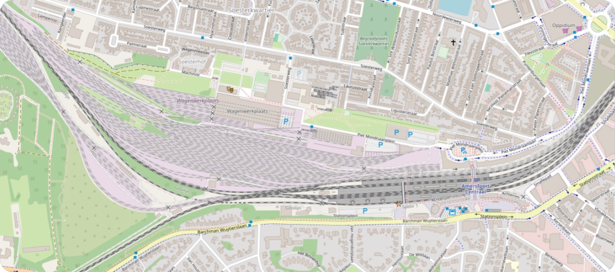 Other sensors detect human entrances at the various locations. On a weekly basis, the results of the trains parked and sprayed are linked to the intrusion detections, allowing for monthly trend detection. Tracks with a lot of graffiti damage are shown in red, medium in yellow and none in blue. The amount of intrusion detections of the Sensor Layer is shown by larger circles (high), smaller or none (purple).