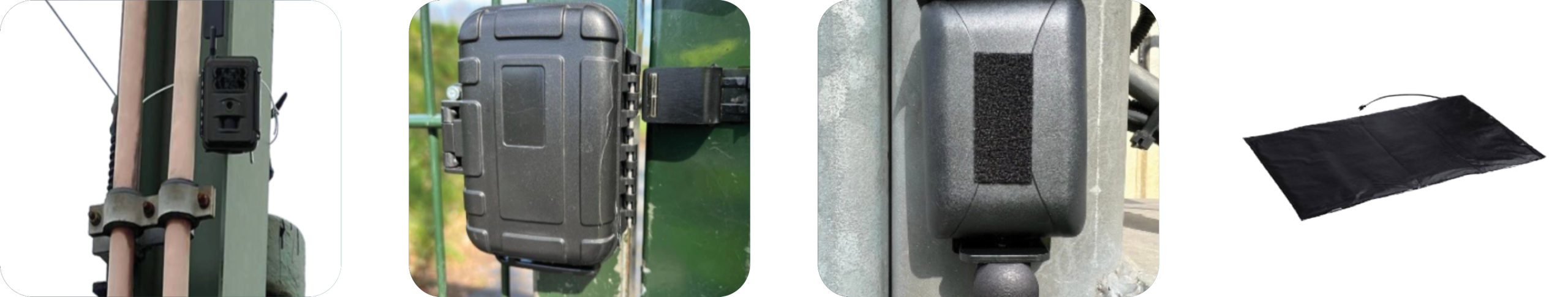 The Sensor Layer consists of 15 mobile reconfigurable battery powered IoT sensors of 4 different types: Gate, Camera, PIR, Pressure mat. The sensors are clamp bolted to the electricity poles requiring no additional installation.